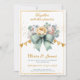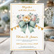 This elegant wedding invitation features a pastel floral bouquet tied with a soft green bow, accented by golden confetti and festive bunting. A romantic and timeless design, perfect for couples planning a stylish, classic, or garden-inspired wedding. Celebrate your special day with this sophisticated floral artwork.
