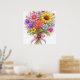 Artwork of a flower bouquet in a scribbled sketch art style. This cheerful illustration captures the simple happiness of a hand-picked wildflower bouquet. Designed to look like a fresh page from an artist's sketchbook, this piece features a vibrant bouquet rendered in a loose, "scribble" style. Energetic black ink lines define the shapes of sunflowers, daisies, and roses, while splashes of bright color fill them with life. The messy, frantic lines add movement and texture, making this a perfect inspirational piece. This graphic floral design stands out with its bold, illustrative look. The contrast between the dark, scratchy outlines and the saturated colors gives it a trendy, modern edge that looks great in any home decor.