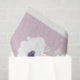 Lilac background with white anemones and pretty pink peonies, bride and faint swirls.