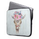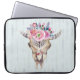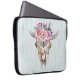 Floral Bull Skull Over Light Blue Background Laptop Sleeve