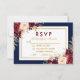 Floral Burgundy Blue Gold Wedding RSVP Card