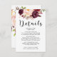 Dreamy meets rustic with this floral burgundy marsala wedding details card. Add your own wording into the template. This card is part of our 'Amelia & Ryan' range - check the full range out in our store!