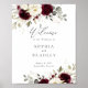 Floral Burgundy White Gold Mariage Affiche de bienvenue. Elégant Floral Blanc Rouge Bourgogne Vert Mariage Cérémonie Réception Affiche de bienvenue