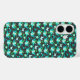 Pretty flowers butterflies and hearts in aqua green and jade patterned iphone on a dark slate grey background. Uniquely designed pattern by Sarah Trett.