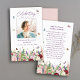 This is a whimsical and pretty memorial prayer card. The design features a beautiful calligraphy font and lovely flowers in pink and purple and also features delicate fluttering butterflies. This funeral prayer card can easily be personalized with your own photo to create a special tribute for your loved one using the template provided. Please contact the designer for any queries regarding this design or for any matching products.
