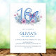 Floral Butterfly Blue 16th Birthday Party Invitation