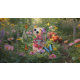 A vibrant phone case featuring a large, stylized butterfly in shades of pink and white, set against a backdrop of colourful flowers. The design includes various blooms in hues of purple, yellow, and pink, creating a lively and cheerful look.