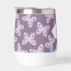 Personalized Floral Butterfly Pattern Wine Tumbler. Butterfly design in shades of dusty purple, pink, and blue. Shown on a dark purple background, but you're able to edit to select your own background colour. Personalize with a name or other text. © Kimbellished, LLC