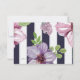 A trendy and elegant response card with bold navy and white stripes overlaid with flowers.