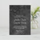 Floral Hibiscus: Black on Chalkboard 5" x 7" Wedding Rehearsal Dinner Invitations © Sunny Mars Designs. Stylish, modern, elegant, classy, trendy, chic customizable Gothic wedding rehearsal dinner invitations with beautiful, gorgeous Goth black swirly floral tropical hibiscus design against a black chalkboard background.