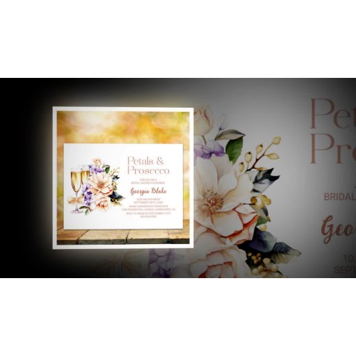 Invite your friends and family to attend your bridal shower with this elegant invitation. The invitation features two champagne glasses amongst peach and pink flowers. You can effortlessly add all the necessary details to the customizable text. To make your invitations unique, you can choose from various paper types and corner styles. Additionally, you have the option to download the invitation.