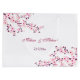 Romantic spring cherry blossom design. Pretty pink blossoms on a white background. With custom bride and goom names and wedding date in an elegant script.