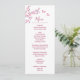 Pink cherry blossoms and two cute butterflies on a white background. With custom bride and groom names, the wedding date and a custom menu text. On the backside are the initials to change.