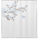 This classic shower curtain features white blue cherry blossoms on a white background. Matching bath mat, towel set, scale and toothbrush holder/ soap dispenser set available.