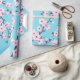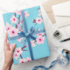 Floral Cherry Blossoms Pattern Pink Sky Blue Wrapping Paper