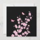 This feminine birthday invitation card features pretty pink cherry blossoms and a cute butterfly on a black background.