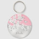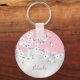 Floral Cherry Blossoms Pink Glitter Monogram Keychain