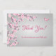 This baby shower thank you card features pink cherry blossom branches on a grey background.