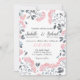 Floral chic grey pink frame watercolor wedding invitation