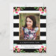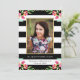 Amis Invitations et famille à votre diplôme avec un invitation Floral Chic graduation. Le design époustouflant comprend des rayures noir et blanc, des accents floraux d'aquarelle rose, un cadre photo doré et des espaces réservés pour votre texte et photo personnalisés.