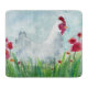 This cutting board features a print of watercolor painting Hen & Poppies by artist D. Carrasco.