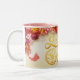 Lovely floral background image with golden paper-cut of a rat into a circle + Large 2020 and Year of the Rat. Design on two-tone (white pink) mug with white accolades shape to surround the handle of the mug.. Matching greeting card, invitation and more.... Perfect for a floral and romantic Chinese New Year of the Rat 2020.