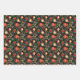 Floral Christmas Chic Pattern Red Green Gold Wrapping Paper Sheet