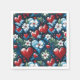 Floral Christmas Hearts in Red Blue and Green Napkin