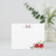 Modern Elegant Chic Girly Script Christmas Holiday Winter Floral Red Berries Gold Branch Green Leaves Monogram Grey Note Card