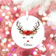 Floral Christmas Reindeer Personalized Name Metal Ornament