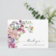 This Floral Colourful Thank You Card showcases a symphony of vibrant jewel-toned wildflowers meticulously detailed in stunning shades of purple, magenta, burgundy, blush pink, dusty blue, and lush sage greenery. The hand-painted watercolor texture contributes a unique character to every piece, ensuring your cards are truly one-of-a-kind. Get ready to capture the joy and excitement of your upcoming spring or summer bridal shower with these colourful and elegant floral invitations.