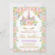 Floral Colours White Unicorn Birthday Invitations