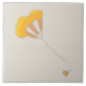 This tile shows a large flower in warm tones such as ochre orange and yellow in the centre marking a diagonal, and a very small one below. In the contours and stems you can see the lines in pencil that gave rise to them. The background is light grey.