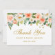 Watercolor Coral Floral Gold Wedding Thank You Card