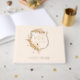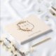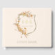 A stunning foil floral crest monogram fall wedding guest book with your monogram and wedding date in the centre in gold foil, on a peachy background.