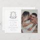 Elegant and rustic hand painted watercolor design by Shelby Allison featuring a family crest style shield and monogram surrounded by intricate flower and leaf details.
