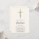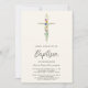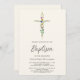 This stylish floral Baptism invitation is decorated with a wildflower cross and script typography.