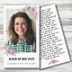 Un hommage simple mais élégant à votre être aimé. L'avant présente un design floral délicat, tandis que l'arrière permet de customiser le texte. Personnalisez facilement avec vos mots choisis, changez le nom et la date, et chérissez les souvenirs avec une photo personnalisée. Créez un mémorial unique et réfléchi avec cette carte de prière funéraire simple et personnalisable.