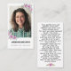 A simple yet elegant tribute to your loved one. The front showcases a delicate floral design, while the back allows you to customize the text. Easily personalize with your chosen words, change the name, and date, and cherish the memories with a custom photo. Create a unique and thoughtful memorial with this simple and customizable funeral prayer card.