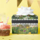 The image on this product depicts a garden of Spring flowers; the colourful blooms in lovely hues of yellow, white, pink, purple, lavender, and fuchsia, with a fun polka dot trim.