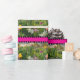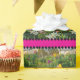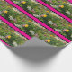 The image on this product depicts a garden of Spring flowers; the colourful blooms in lovely hues of yellow, white, pink, purple, lavender, and fuchsia, with a fun polka dot trim.
