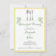 This rustic floral and cutlery rehearsal dinner invitation features a very faint pink and green rustic floral arrangement and gray/silver cutlery on a white background with a pale yellow border. It's ready to be personalized and is suitable for a couple having a rustic wedding.