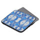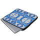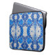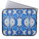 Laptop sleeve in a damask pattern based on a William Morris floral, digitally enhanced and coloured - shades of medium to dark sapphire blue and white, against a light silver grey / grey background