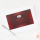 Make a lasting impression with this elegant and exotic product label design featuring pretty red hawaiian flowers with palm leaves on a dark red background. A cool palm leaf shadow matching to the shimmery border frame.