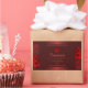 Make a lasting impression with this elegant and exotic product label design featuring pretty red hawaiian flowers with palm leaves on a dark red background. A cool palm leaf shadow matching to the shimmery border frames.