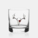 This Southwestern whiskey glass features a hand-drawn illustration of a deer skull and antlers adorned with red roses. Personalize with your name.