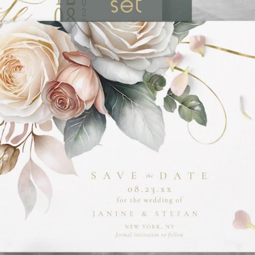 This wedding suite with it's lush, dramatic florals from creamy white to blush pink, gold swirl accents and beautiful watercolor backgrounds, creates an elegant, romantic vibe, giving just a hint of what guests can expect on your big day. This striking wedding invitation on a background of Spanish green, provides a template to easily add your event details in luxurious gold text. Search ID1022 to see all the products in this wedding suite.