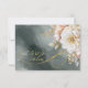 This wedding suite with it's lush, dramatic florals from creamy white to blush pink, gold swirl accents and beautiful watercolor backgrounds, creates an elegant, romantic vibe, giving just a hint of what guests can expect on your big day. This eye-catching RSVP card on a watercolor background of Spanish green, provides a template to easily add your QR code, website and online reply information in luxurious gold text. Search ID1022 to see all the products in this wedding suite.