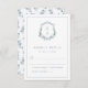 This romantic and stylish wedding RSVP enclosure card features beautiful hand-painted watercolor dusty blue flowers on a crest | wreath with the bride and groom's monogram. The back of the invitation includes a whimsical pattern but can easily be deleted if you prefer. Find matching items in the Dusty Blue Monogrammed Crest Collection.