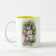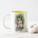 This cute vintage design features a white Easter bunny sitting and holding an egg basket of lovely Spring flowers.